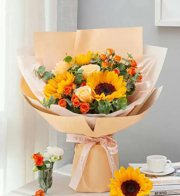 阳光灿烂,令人愉快,向日葵表示赞赏,积极和幸福。这些天生令人愉悦的花朵是让喜欢的人微笑的完美方式,而且不会传递出过分浪漫的信息。向日葵在全年每个季节都可以买到。如果是春天,你还可以送她郁金香。