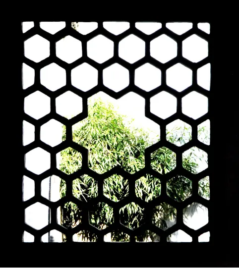 站在漏窗之外,看园内的亭台楼阁,被窗棂切割成零碎的光影,草木的绿意透过留白处溢出,风过之时,枝叶摇曳,光影流转,仿佛一幅流动的水墨丹青。
