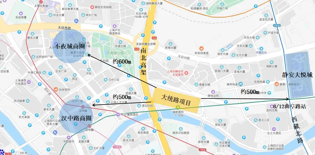 交通:轨交1/8/12/13,南北高架、延安高架、内环高架