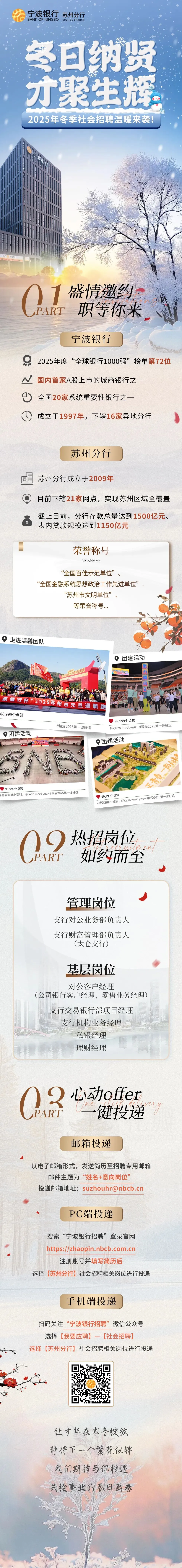 >宁波银行苏州分行2025年冬季招聘