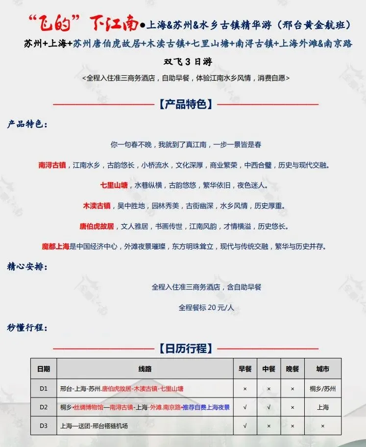 >上海 苏州 南浔 木渎双飞三日游399元/人