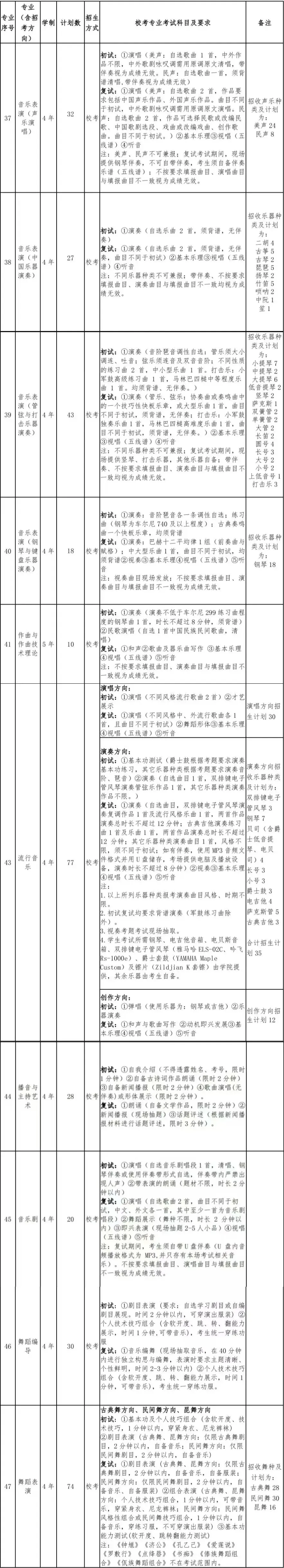 3.音乐表演、流行音乐乐器演奏类专业只招收各专业所列乐器种类,不同乐器种类不可兼报,凡未列出的乐器种类该年不接受报考。