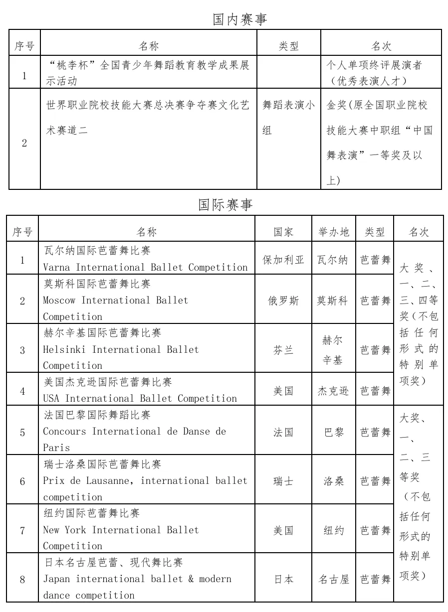 (2)舞蹈编导、舞蹈表演专业I类破格奖项如下: