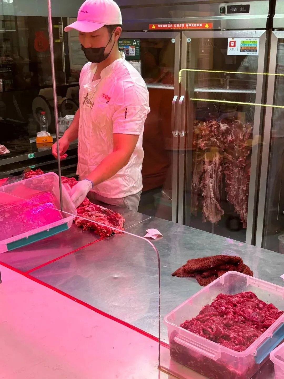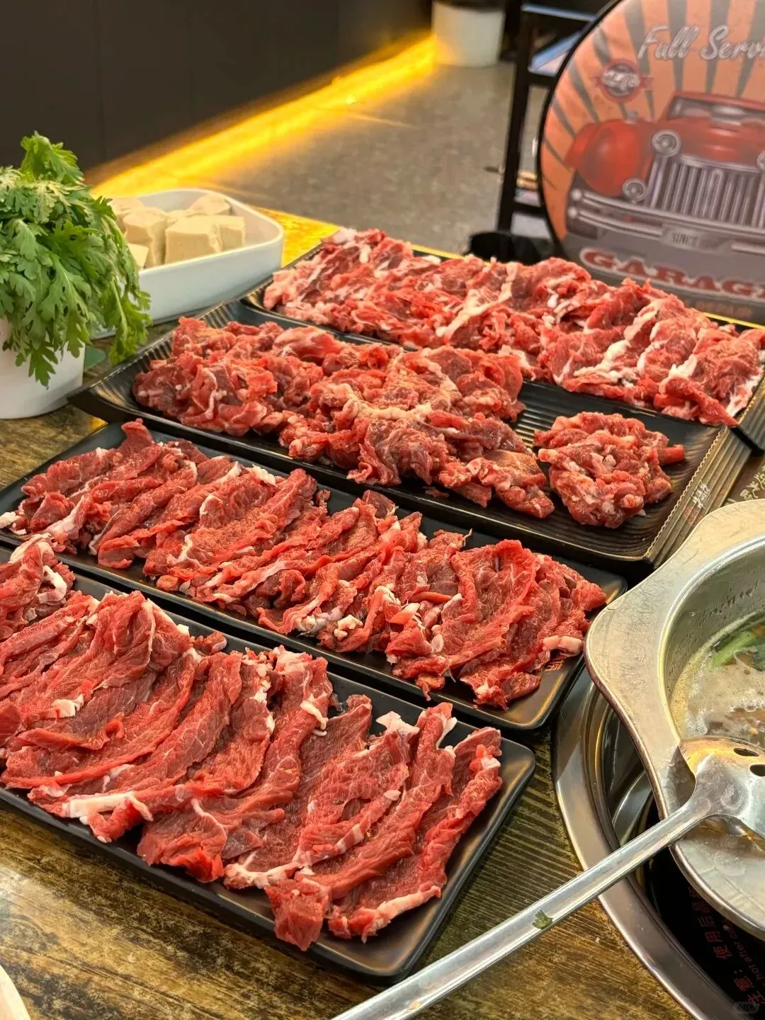 走进店内,最先映入眼帘的便是那一字排开的明档窗口。这里的每一块牛肉都经过严格筛选,从贵州大山深处直达餐桌。师傅们手起刀落,动作娴熟而富有节奏感,每一片牛肉都厚薄均匀,色泽鲜红如画,纹理清晰可见。这种看得见的鲜活感,是任何冷冻肉类都无法比拟的匠心。