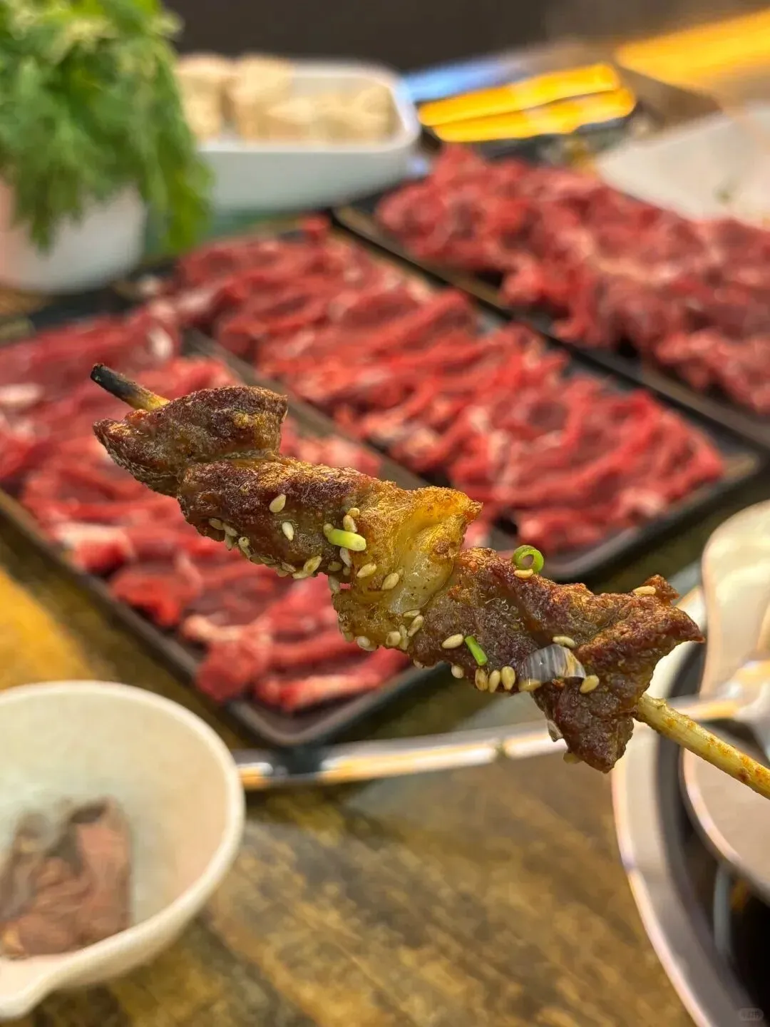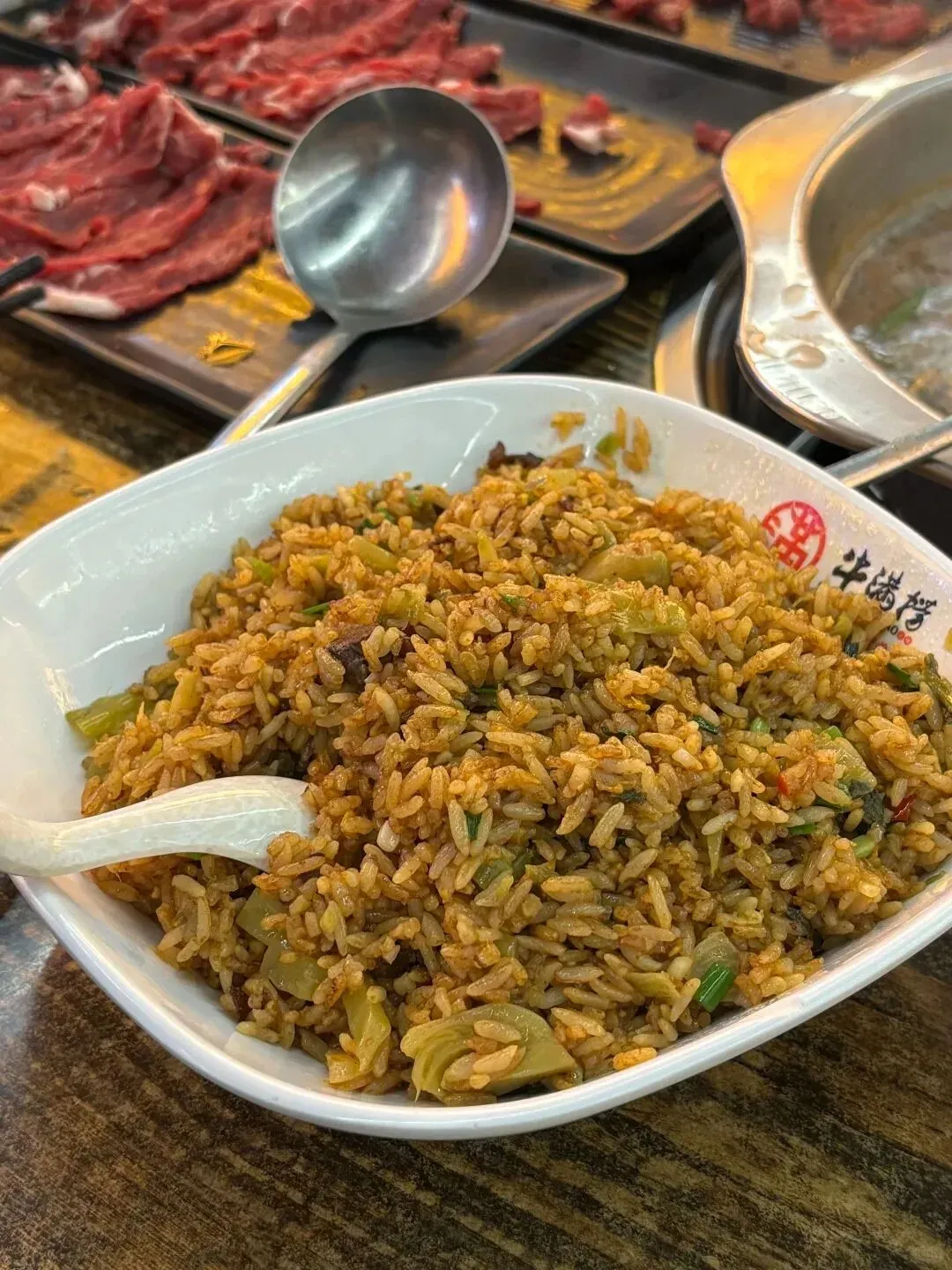 除了火锅,店内的特色烧烤同样不容错过。滋滋冒油的牛肉串,撒上喷香的芝麻和葱花,焦香四溢。还有那一碗粒粒分明、镬气十足的牛肉炒饭,是火锅之后最完美的收尾,碳水带来的满足感在这一刻达到了顶峰。
