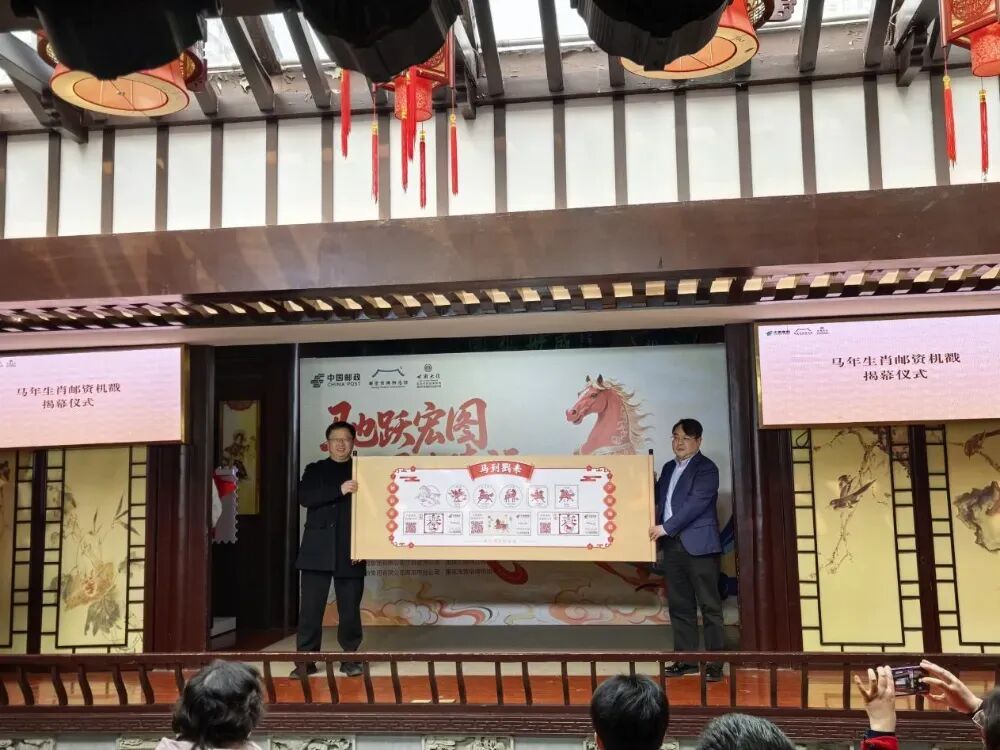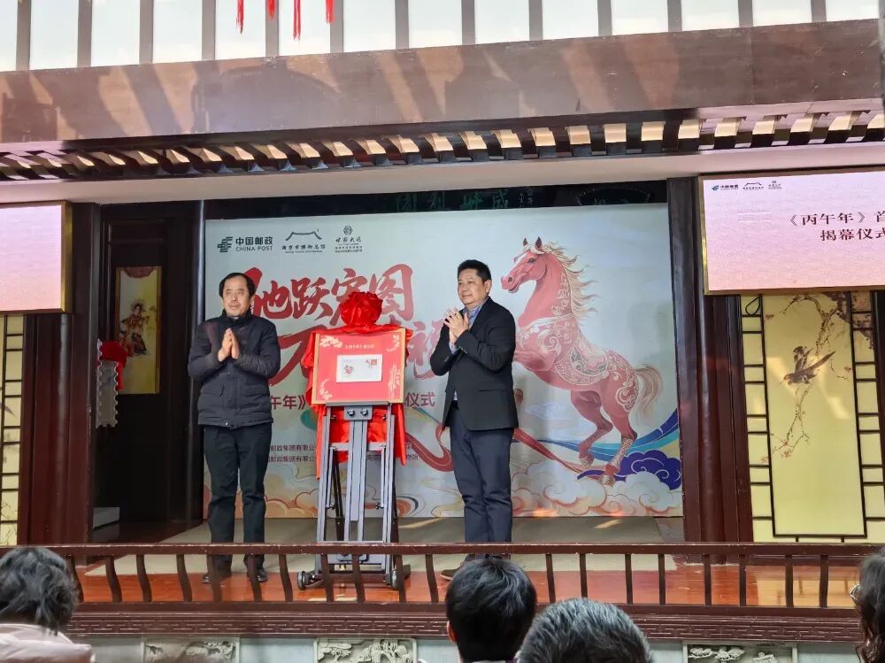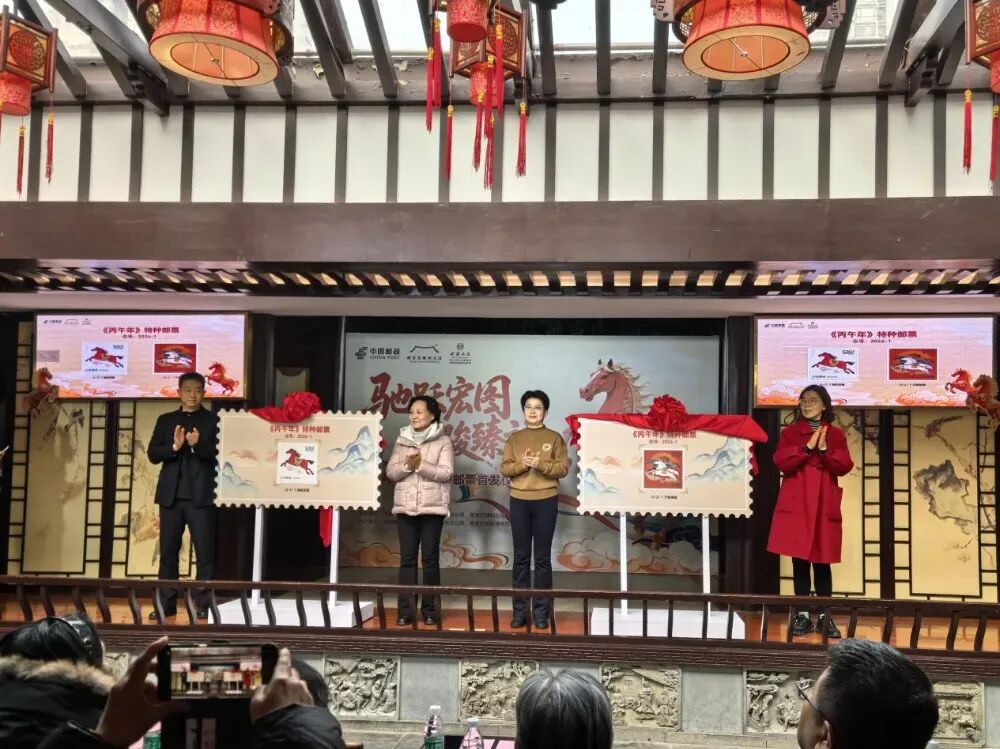 1月5日,南京市民俗博物馆热闹非凡。伴随着轻快激昂的二胡名曲《赛马》,“驰跃宏图 万骏臻福”《丙午年》特种邮票在这里正式揭幕。
