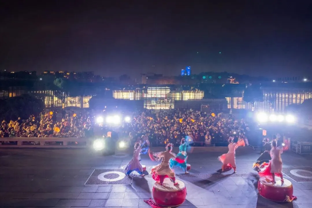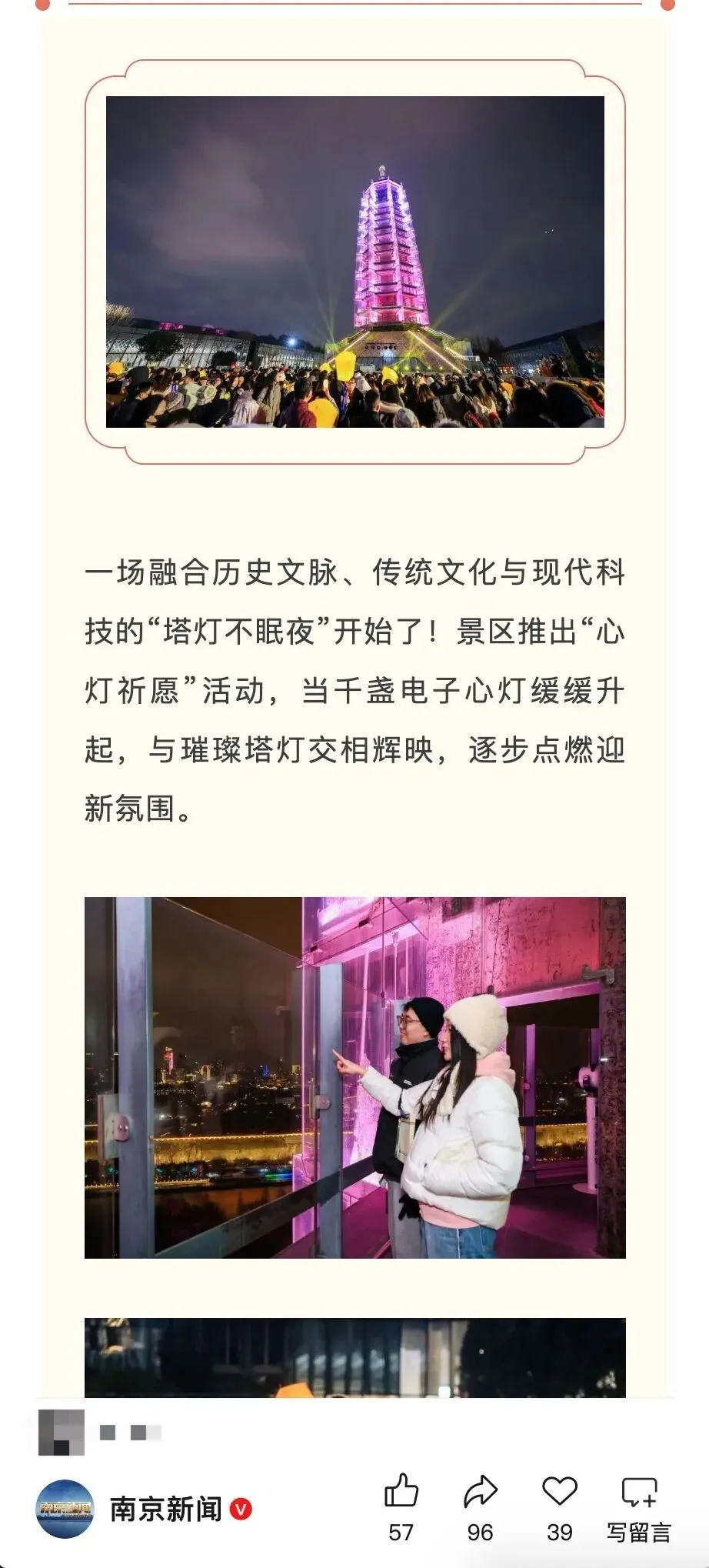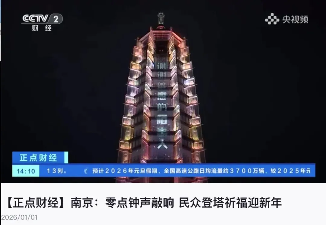 新年塔灯、零点钟声与孔明灯海交相辉映