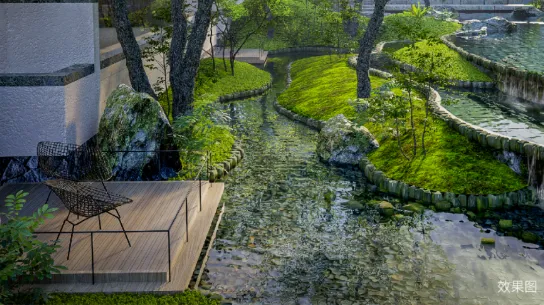 ②生态秘境,借势原生高差,打造台地式景观系统体验,规划约2.86万方景观带,归心巷、观止台、聆溪谷等景观节点串联起各功能空间。
