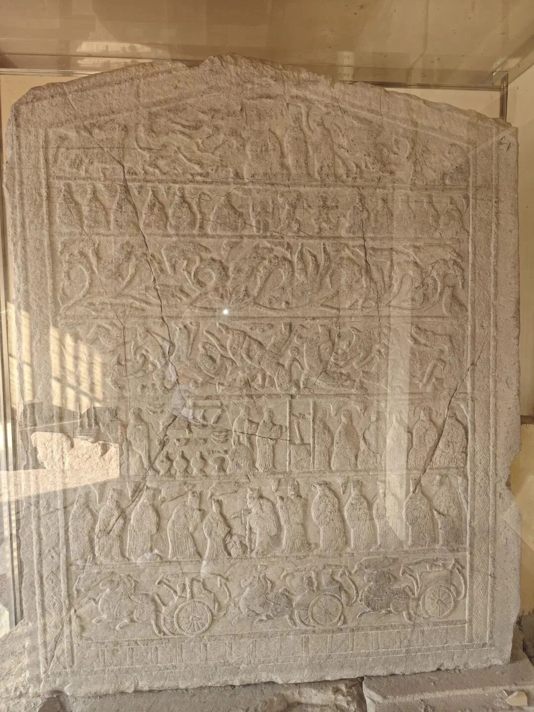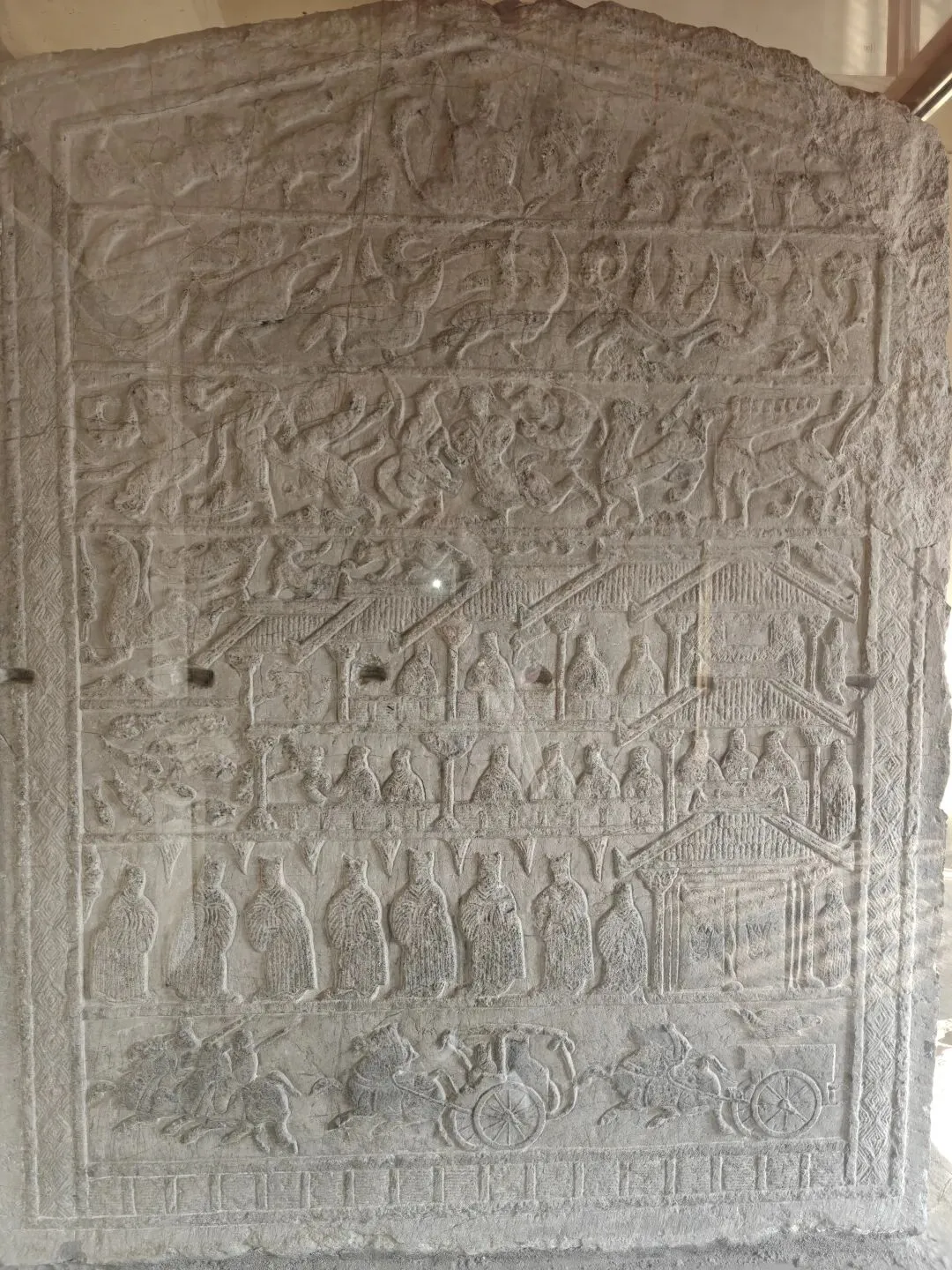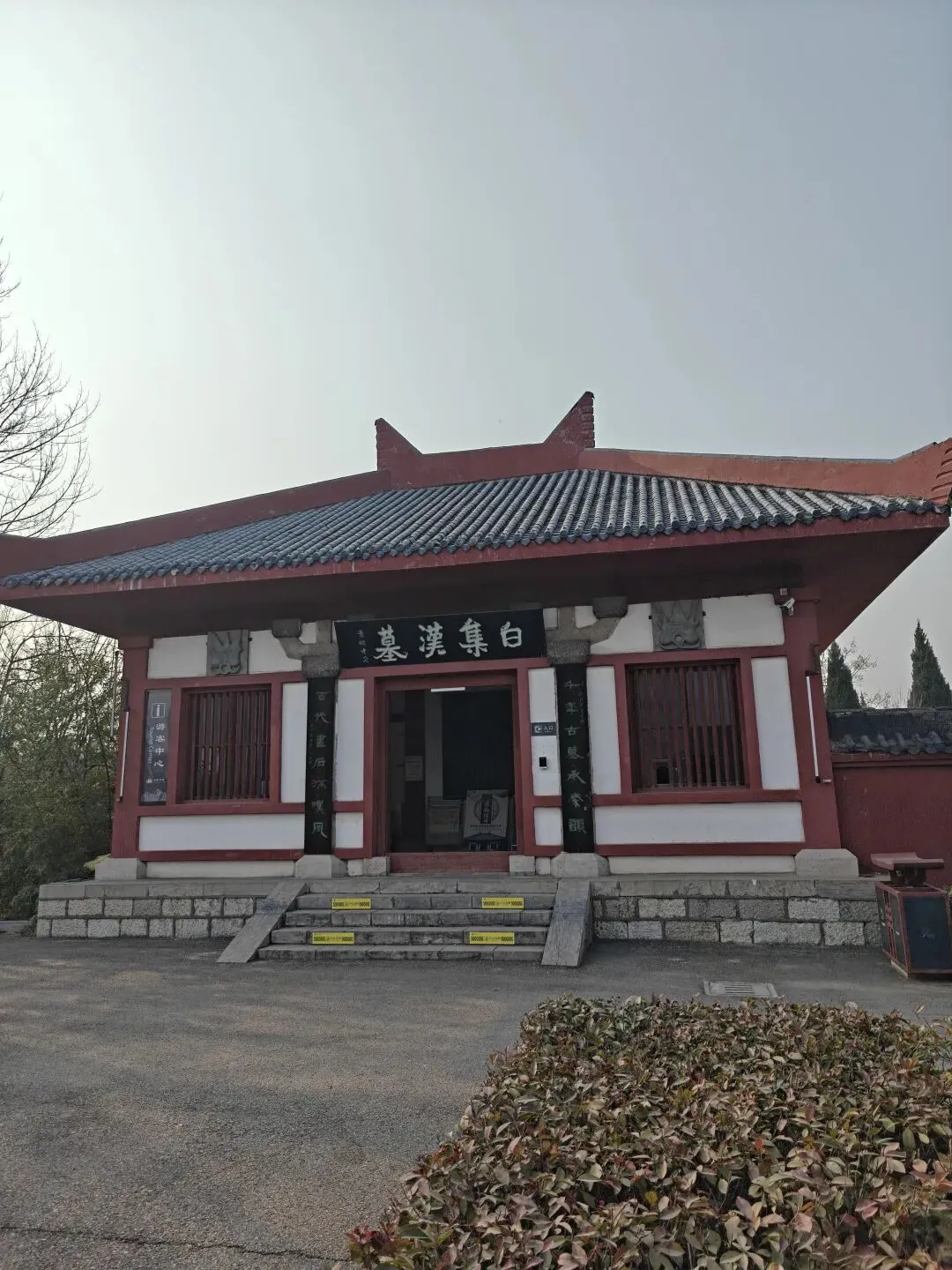 龟山墓虽然大,但是里面很简陋,跟窑洞差不多,我想看看壁画浮雕,就选了白集。这个墓室格局方正清晰,整体比较小,就像看普通公寓比深宅大院更方便立刻勾勒出它的户型图,所以感觉比龟山有趣。出来还有一个长廊有很多浮雕壁画展出,又看了半天,还挺有趣,但一个没记住。
