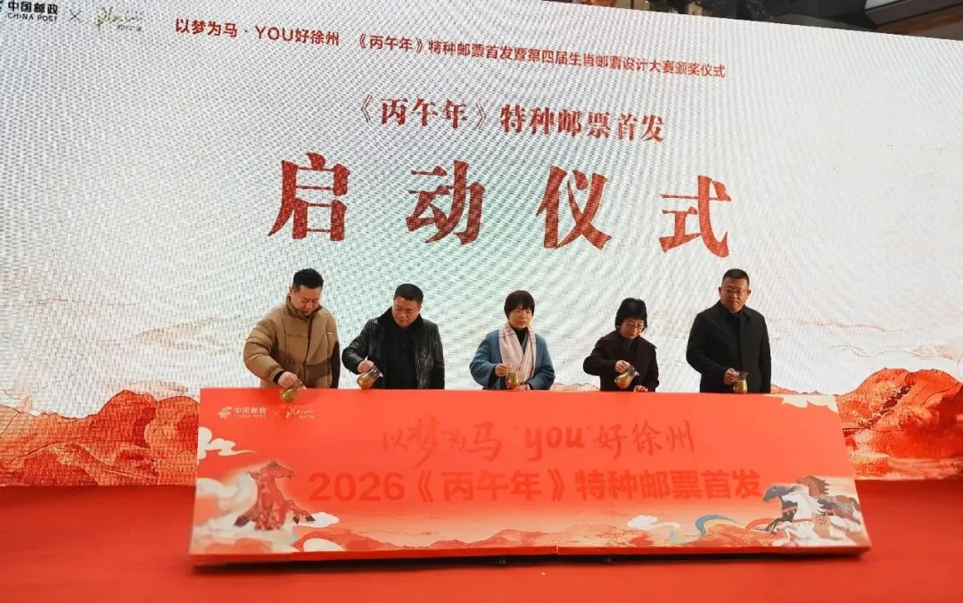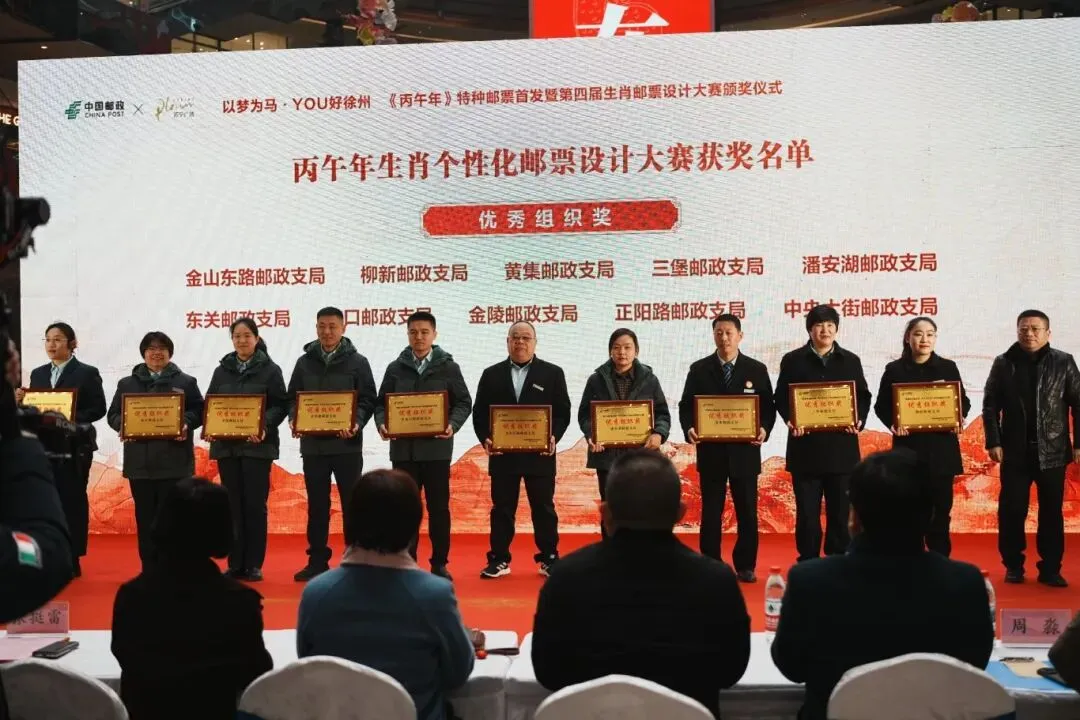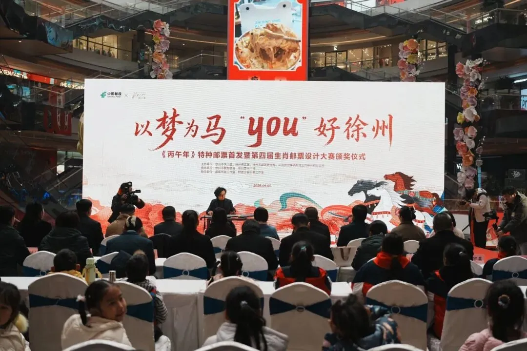 1月5日,徐州市分公司在苏宁广场举办《丙午年》特种邮票首发暨第四届生肖邮票设计大赛颁奖活动。徐州市关工委、市文联、市邮政管理局、市集邮协会及苏宁广场相关领导,与获奖师生代表、集藏爱好者等百余人共同参加本次活动。
