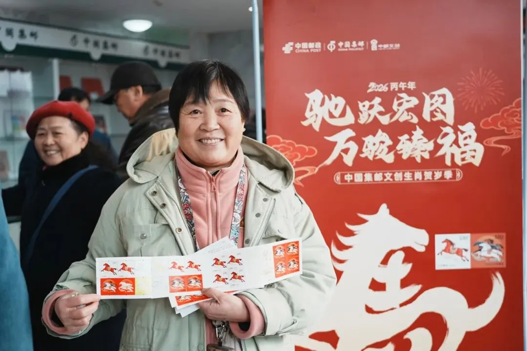 现场穿插非遗古琴独奏《醉渔唱晚》表演、获奖作品展示、生肖文创产品展销等特色环节。其中,“以梦为马”主题产品、《骏马迎春》邮册、七彩小马香包等文创好物一经亮相便备受热捧,展区内大赛优秀作品与特色邮文创引得市民驻足观赏、打卡留念。