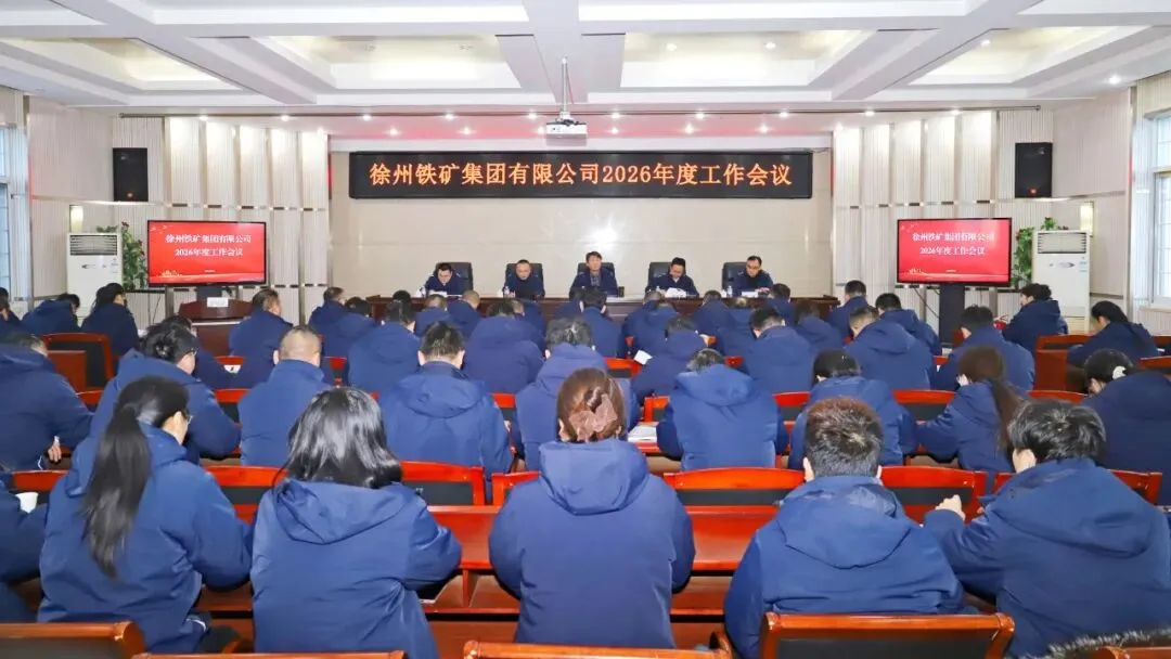 1月5日,徐州铁矿集团召开2026年度工作会议,铁矿集团领导班子出席会议,铁矿集团全体中层管理人员、本部及基层管理人员、大学生职工代表参加会议,会议由铁矿集团党委委员、工会主席、综合部部长李磊主持。