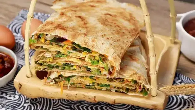 煎饼黄,青菜香,外酥里嫩飘芬香