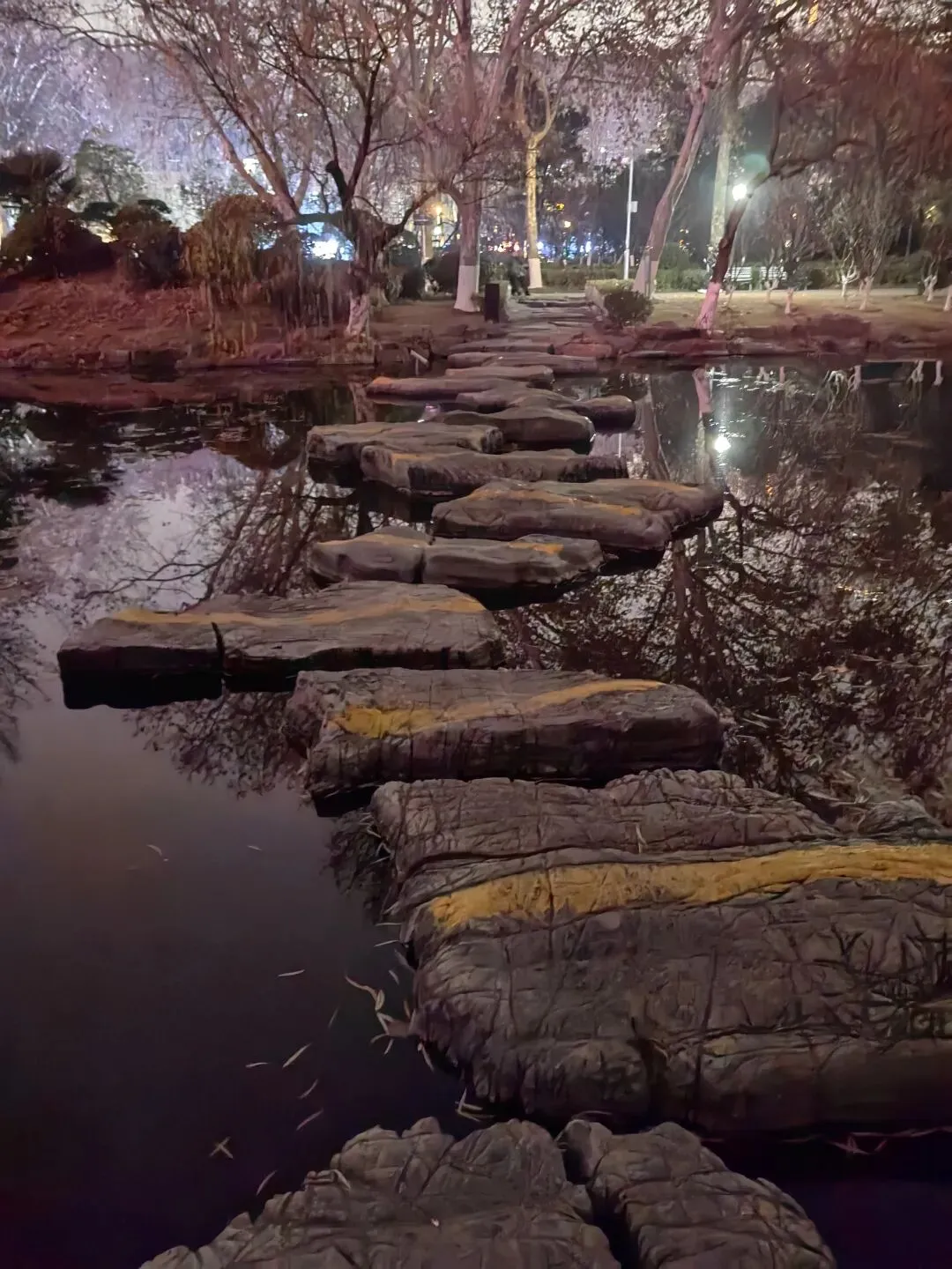 说实话,在这个冬夜来寻访燕子楼,湖水冰冷,汀步崎岖,近视+散光的我只能看得清建筑的轮廓,反倒别有一番滋味。