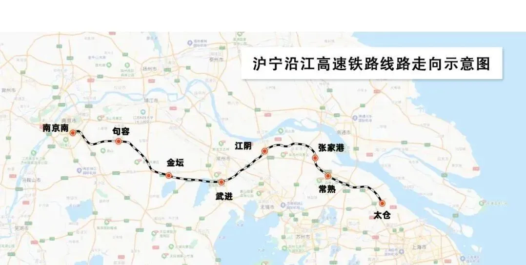 这条高铁北起南京,南至苏州太仓,是串联长三角核心城市的重要城际线路,设计时速350公里,和现有主流高铁速度持平。