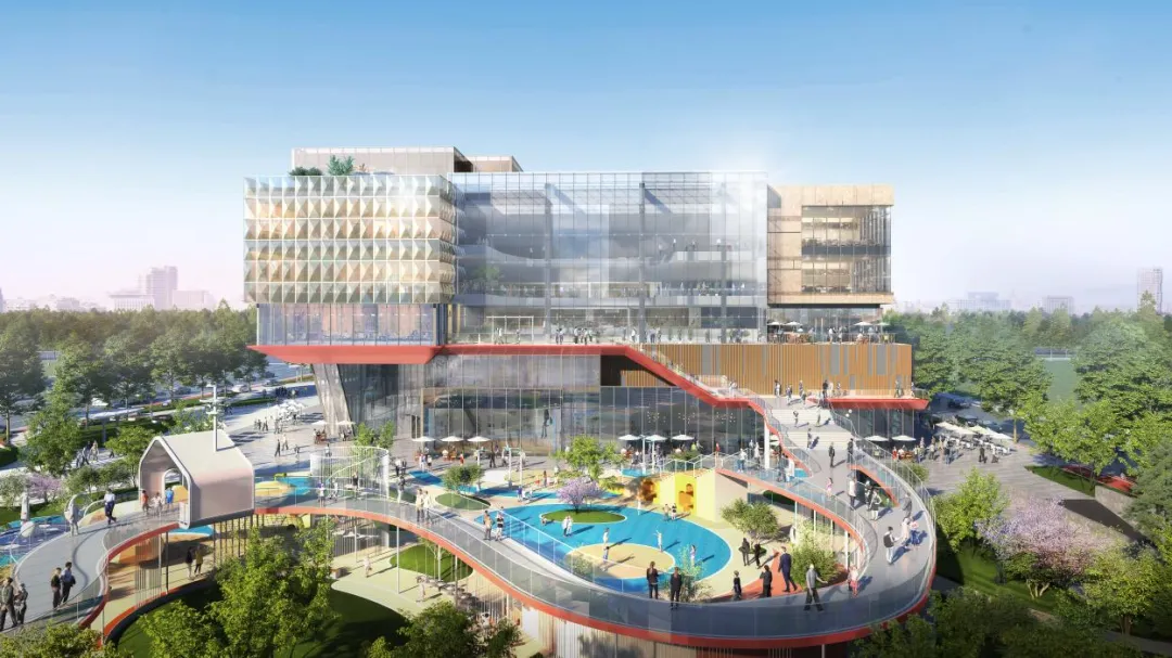 几方购物中心精心打造了约5000平方米的主题公园,一条蜿蜒的廊桥宛如一条“红色丝带”,将公园、花园、乐园三大空间有机串联。