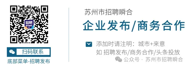 应聘请注明职位+来源微信公众号【苏州市招聘瞬合】,直达推荐