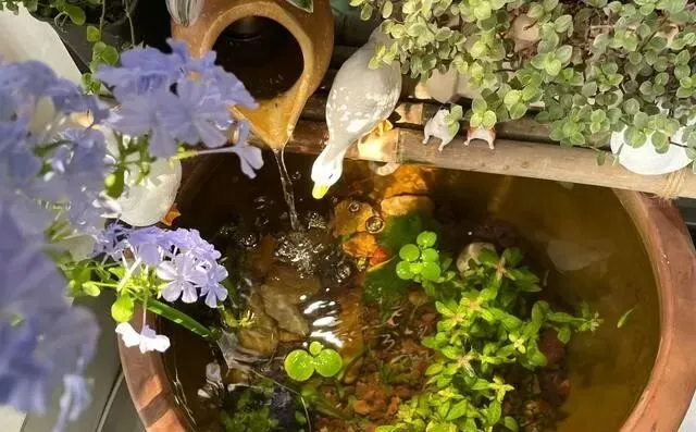 苏州有个叫小雨的姑娘 , 把自家露台折腾成了一个迷你花园 , 还养了鱼 , 关键是 , 她把花和鱼玩出了生态循环~