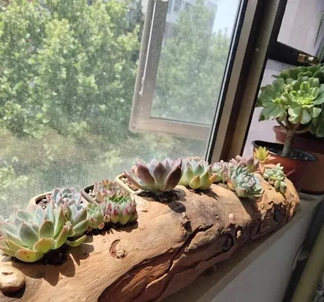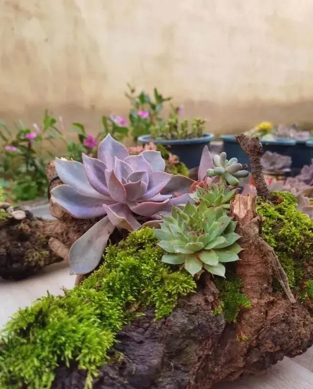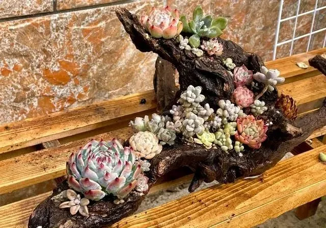 苏州这小伙子 , 真的绝了 , 别人养多肉用花盆 , 他直接捡了块柴火料子 , 往上一种 , 火了!