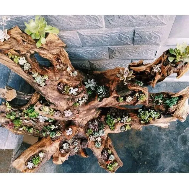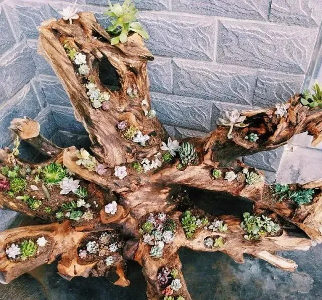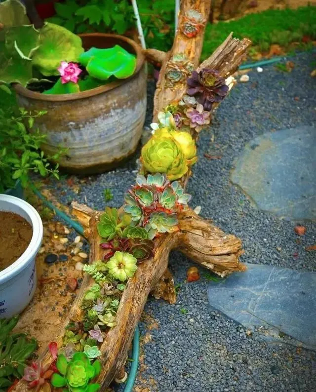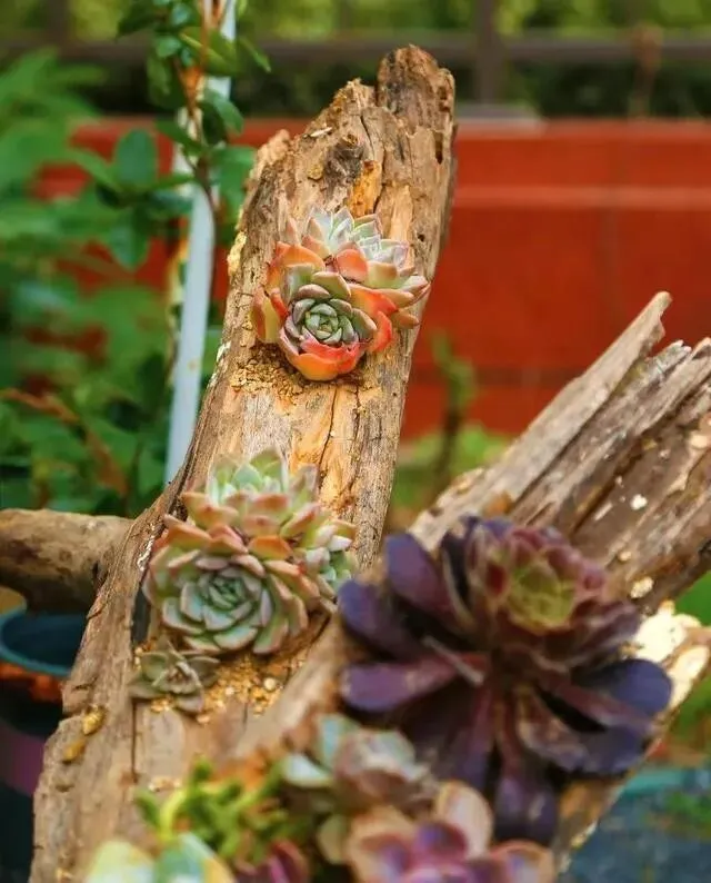 有天看到自家院子里那堆烂木桩 , 本来是要当柴烧的 , 他突然就想 , 这玩意儿拿来种多肉 , 不挺好?