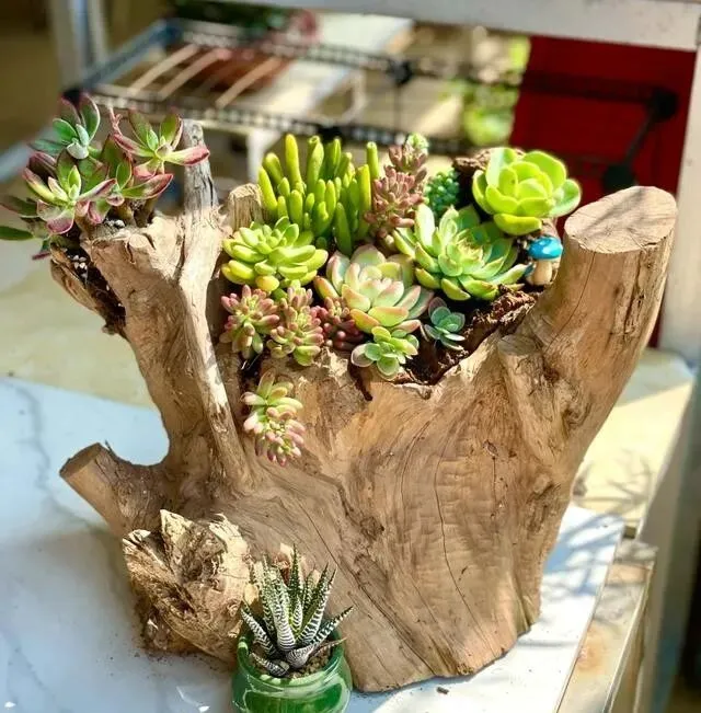 网友直接炸了 , "这创意绝了" , "烂木桩和多肉简直天生一对"...