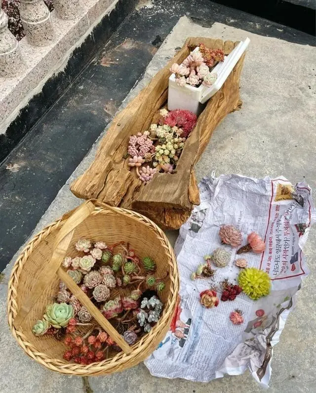 种的时候 , 凹槽底部先铺点颗粒 , 再填土 , 最后把多肉栽进去就行。