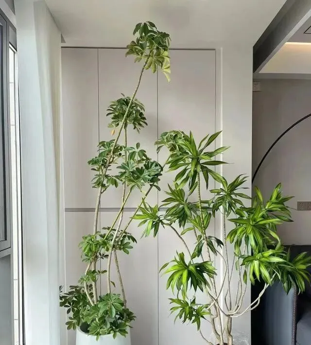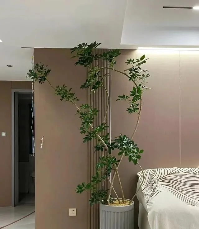 不用多贵的装修 , 几盆养好的鸭脚木往那一摆 , 氛围感直接拉满 , 高级又招财 , 谁看了不心动呢?