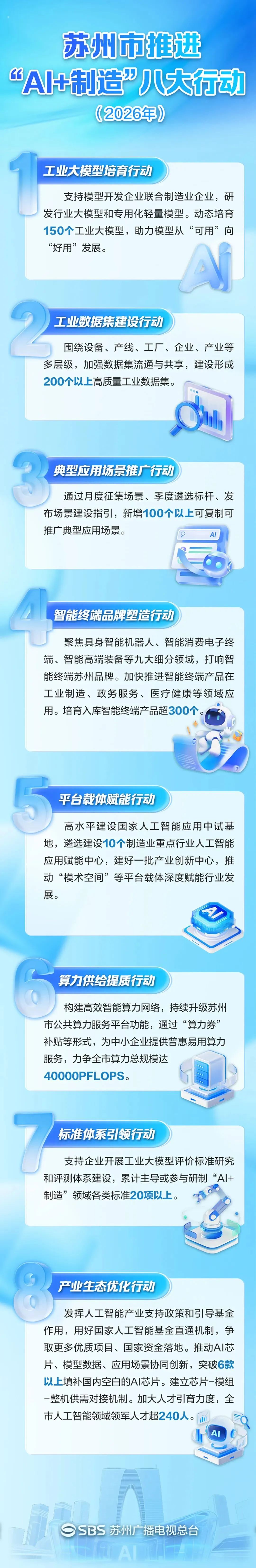 近年来,苏州坚持把发展经济的着力点放在实体经济上,深入推进新型工业化,2025年规上工业总产值预计达4.89万亿元,形成3个万亿级产业集群,连续5年入选全国“营商环境最佳口碑城市”。新年伊始,推出《苏州市推进新型工业化2026年行动方案》,实施新型工业化“八大工程”,全力争创国家新型工业化示范区,2026年力争规上工业总产值突破5万亿元。
