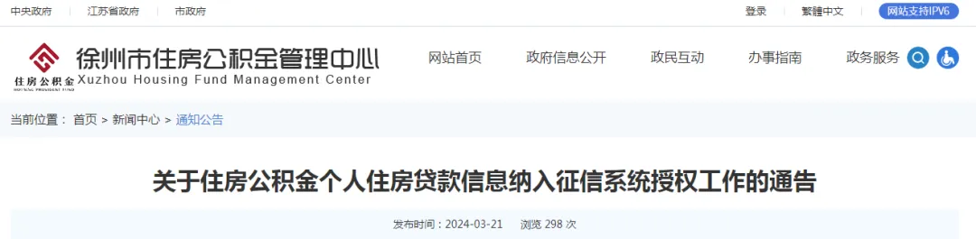 为加快推进住房公积金数字化转型,加强社会信用体系建设,提升管理服务效能,有效防范风险,根据《住房和城乡建设部办公厅关于做好征信信息共享有关工作的通知》(建办金函〔2022〕229号)文件要求,经中国人民银行总行征信中心核准,徐州市住房公积金管理中心个人住房贷款信息将纳入中国人民银行征信系统,现就有关事项通告如下: