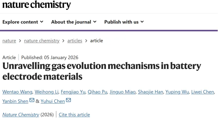 参考文献:Wentao Wang, Weihong Li, Fengjiao Yu. et al. Unravelling gas evolution mechanisms in battery electrode materials. Nature Chemistry. (2025).