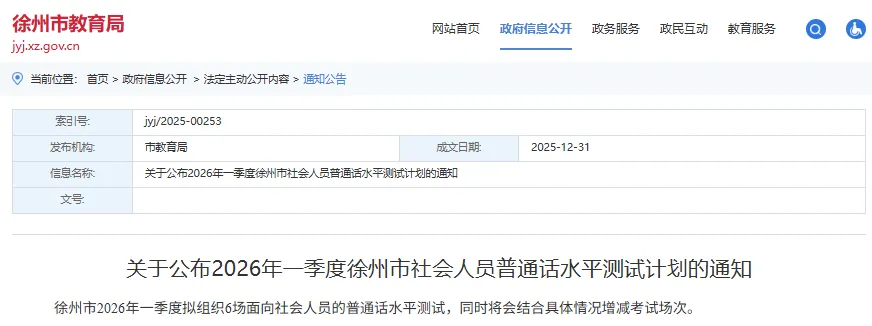 徐州市社会人员普通话水平测试计划的通知