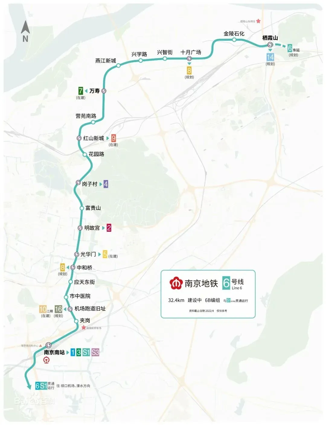 6号线全长32.365千米,全线地下敷设,共设19座车站,堪称“板块连接器”。线路北起栖霞山站,南至南京南站,沿途串联起栖霞山、南京经济技术开发区、兴智新城、燕子矶、新玄武、明故宫、光华门、南部新城等8大重要区域。不管是通勤族、购房者还是旅游爱好者,都能直接受益——栖霞山的游客不用再辗转公交,兴智新城、燕子矶的居民直达主城更快捷,南部新城与北部片区的联系也将彻底打通。