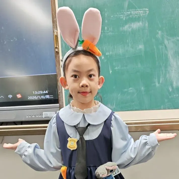 临近演出的几天里,总能在音乐教室看到 3 班孩子们认真排练的身影。为了呈现《ZOO》里动物们灵动的姿态,他们跟着张老师一遍遍抠动作、练队形,哪怕重复很多遍也毫无怨言。汗水浸湿了校服,却浇不灭他们的热情;累得气喘吁吁,脸上依然挂着灿烂的笑容。“张老师,我还能再练一遍!”“我想跳得更像小兔子 / 小狐狸!” 稚嫩的声音里满是执着,这份认真与坚持,让每个排练的日子都格外有意义。