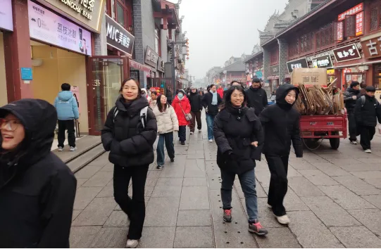 挥别鄂西山水,团队沿着未消的雪痕,抵达底蕴深厚的历史名城——襄阳。巍峨古城墙覆着薄薄新雪,沧桑凝重之气扑面而来。登临临汉门城楼,汉江烟波浩渺尽收眼底;近观夫人城、仲宣楼等古迹,于细致讲解中遥想当年“铁打的襄阳”的金戈铁马。穿行于北街古巷,雪花轻盈飘落于青石板路,同事们并肩笑语,步履温暖了古城的寒冬。行至昭明台前,雪花与古建飞檐勾勒出绝美轮廓,诗意盎然。寒风虽劲,关怀更暖:一句“小心路滑”的贴心提醒,一杯传递到手的热饮,无不于细微处彰显团队的真挚情谊。这场风雪中的寻古探幽,不仅是一次与历史的对话,更让古城的一砖一瓦,都镌刻下方正人风雨同舟、温暖相伴的生动印记。