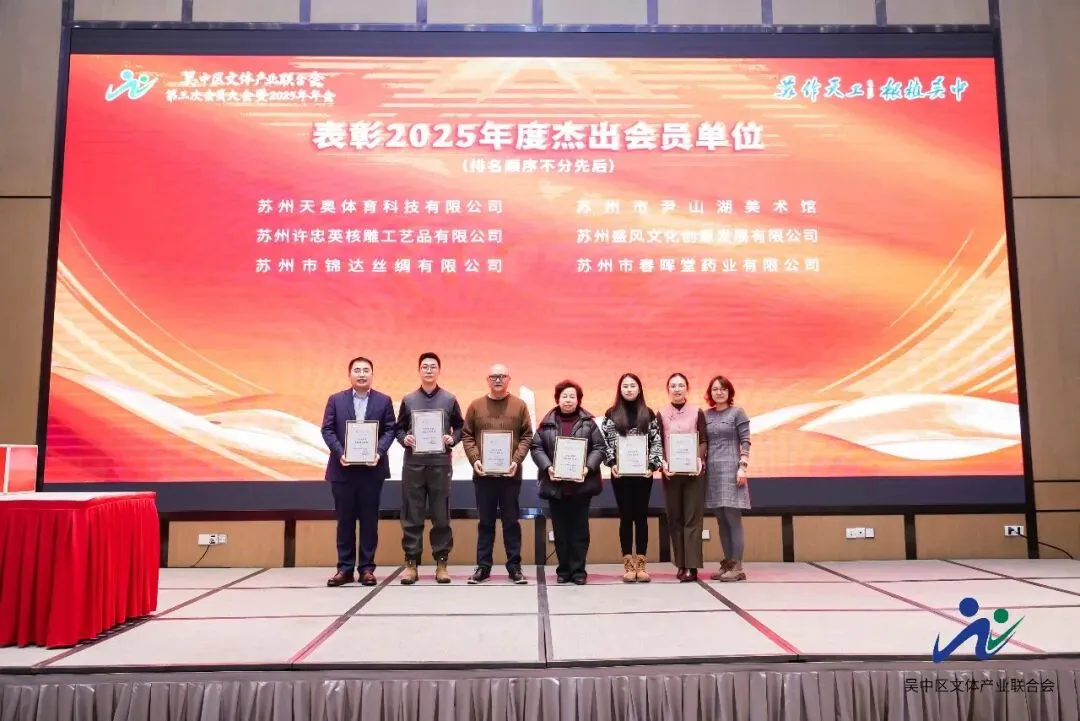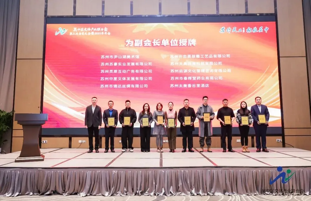 2026年1月6日,苏州市吴中区文体产业联合会第三次会员大会暨2025年年会在苏州太美香谷里酒店顺利召开。