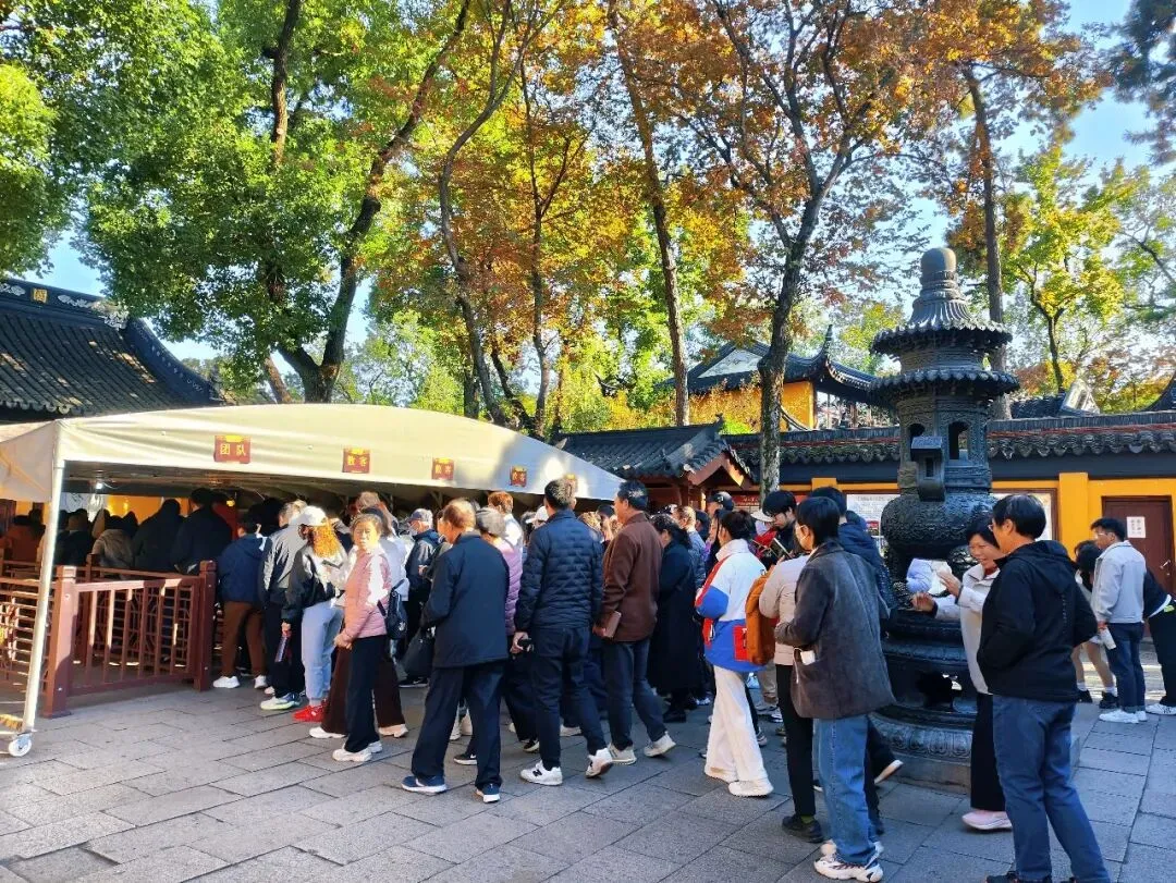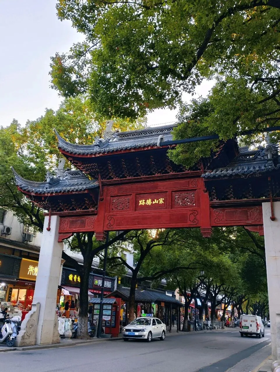 再看周遭,城市化的脚步早已改写了它的位置坐标,所谓的“姑苏城外”早已成了过往。如今的寒山寺外,车水马龙,配套的商铺鳞次栉比,门口更是挤满了络绎不绝的旅行团,全然是一派喧闹的景象。不敢想这座如今被市井烟火包裹的古寺,竟然已经静静在此伫立了一千五百余年。