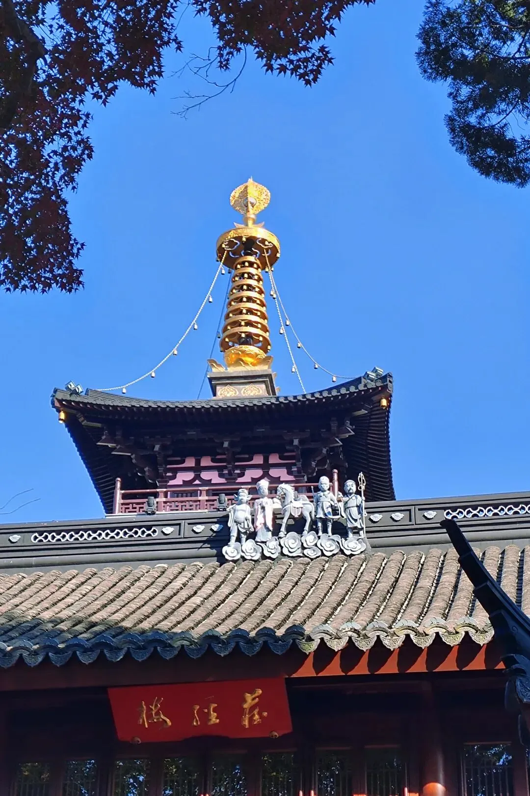 据说在“寒拾殿”求姻缘超灵验,很多情侣会来这里祈福。殿外的寒拾泉古井也值得一看,相传是寒山拾得当年结庐而居时开凿,井水曾用来施舍过往旅人,至今仍有水盈满,透着岁月的温情。参观完寒拾殿后别忘了抬头看屋脊,上面雕饰着《西游记》里西天取经的人物故事,栩栩如生,极具观赏性。