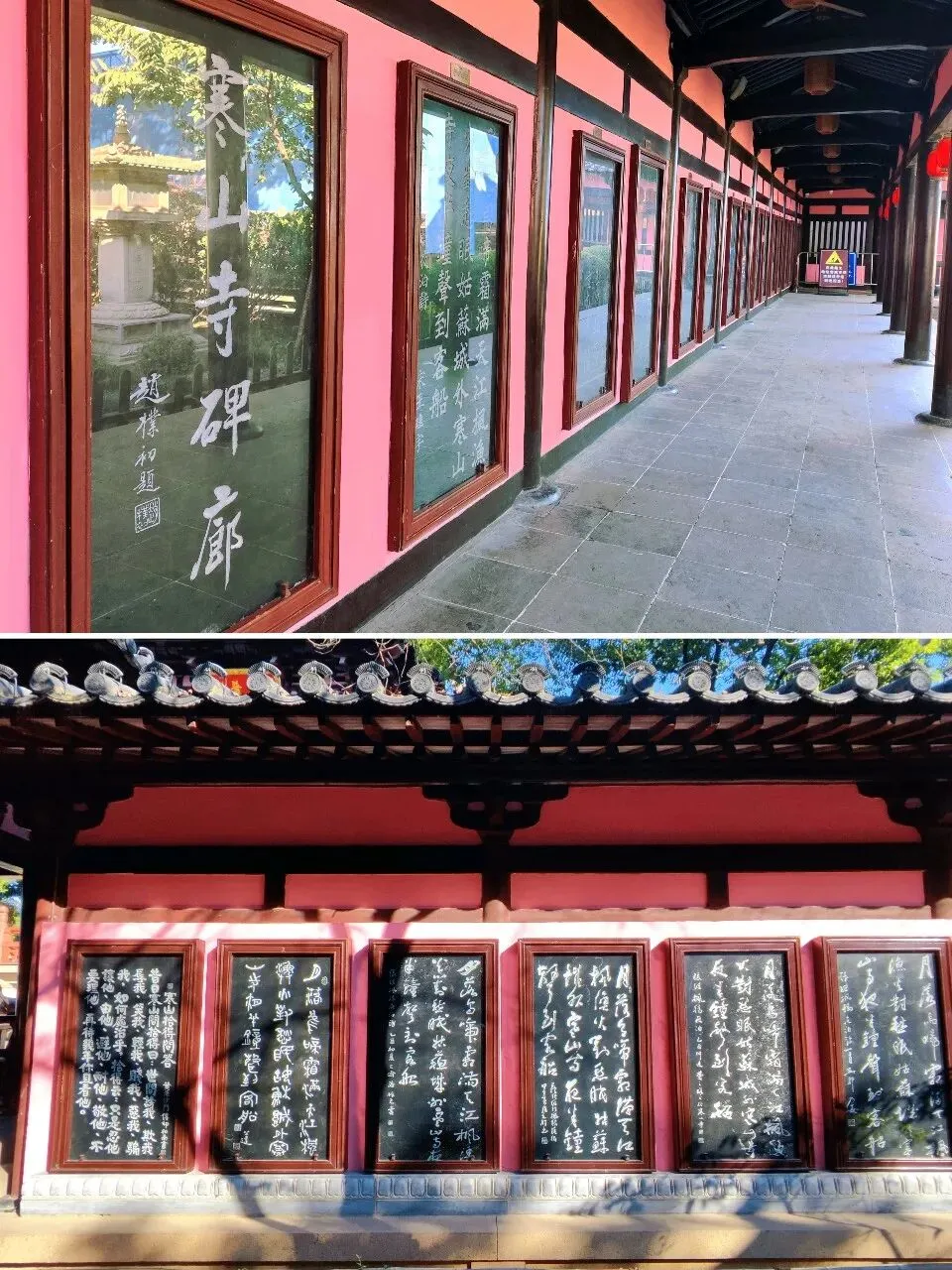 寒山寺因唐代诗人张继的《枫桥夜泊》而名扬天下,寺内设有多处与该诗相关的碑廊,其中以清代俞樾所书的最为出名,拓片流传最广。除了《枫桥夜泊》,碑廊里还有李大钊、陈云等革命家的题字碑刻,古今笔墨在此交汇,每一笔都藏着岁月的重量,形成了浓厚的诗词文化氛围。碑廊也是来寒山寺必打卡的景点之一,尤其是书法爱好者,请千万不要错过。