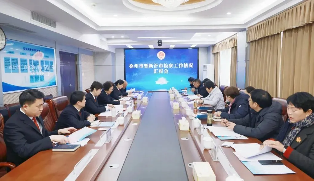 1月7日上午,徐州市暨新沂市检察工作情况汇报会在新沂市检察院召开。徐州市检察院检委会委员、三级高级检察官李昕向部分驻新的市人大代表通报2025年全市检察工作情况。新沂市人大常委会党组副书记、副主任胡春鸣主持汇报会。新沂市检察院党组书记、检察长孙莉,徐州市检察院、新沂市人大常委会相关工委、新沂市检察院有关部门负责人等参加汇报会。