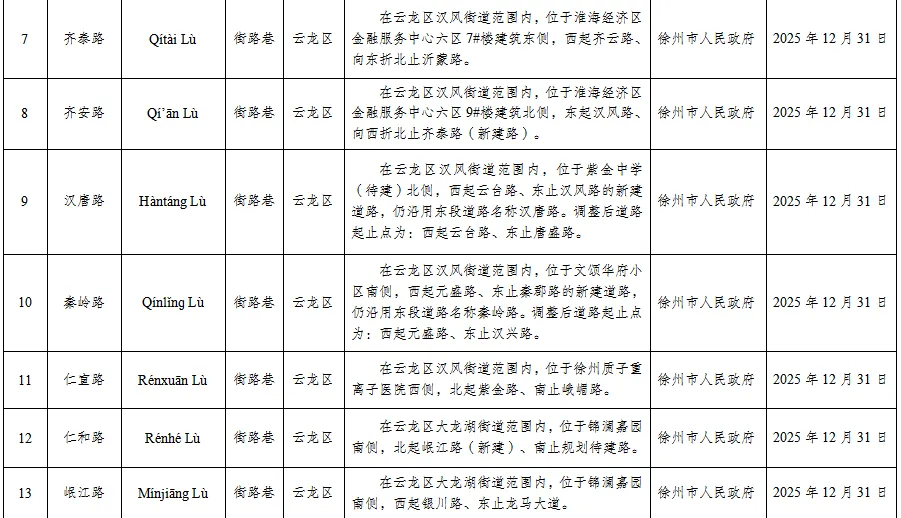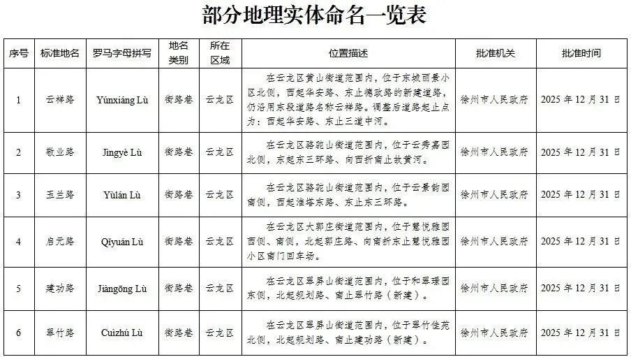-------------------------------徐州市民政局发布《关于市区部分地理实体命名的公告(2026第1号)》。根据国务院《地名管理条例》有关规定,经市人民政府批准对市区部分地理实体进行命名,现予以公告。详情滑动下方查看▼