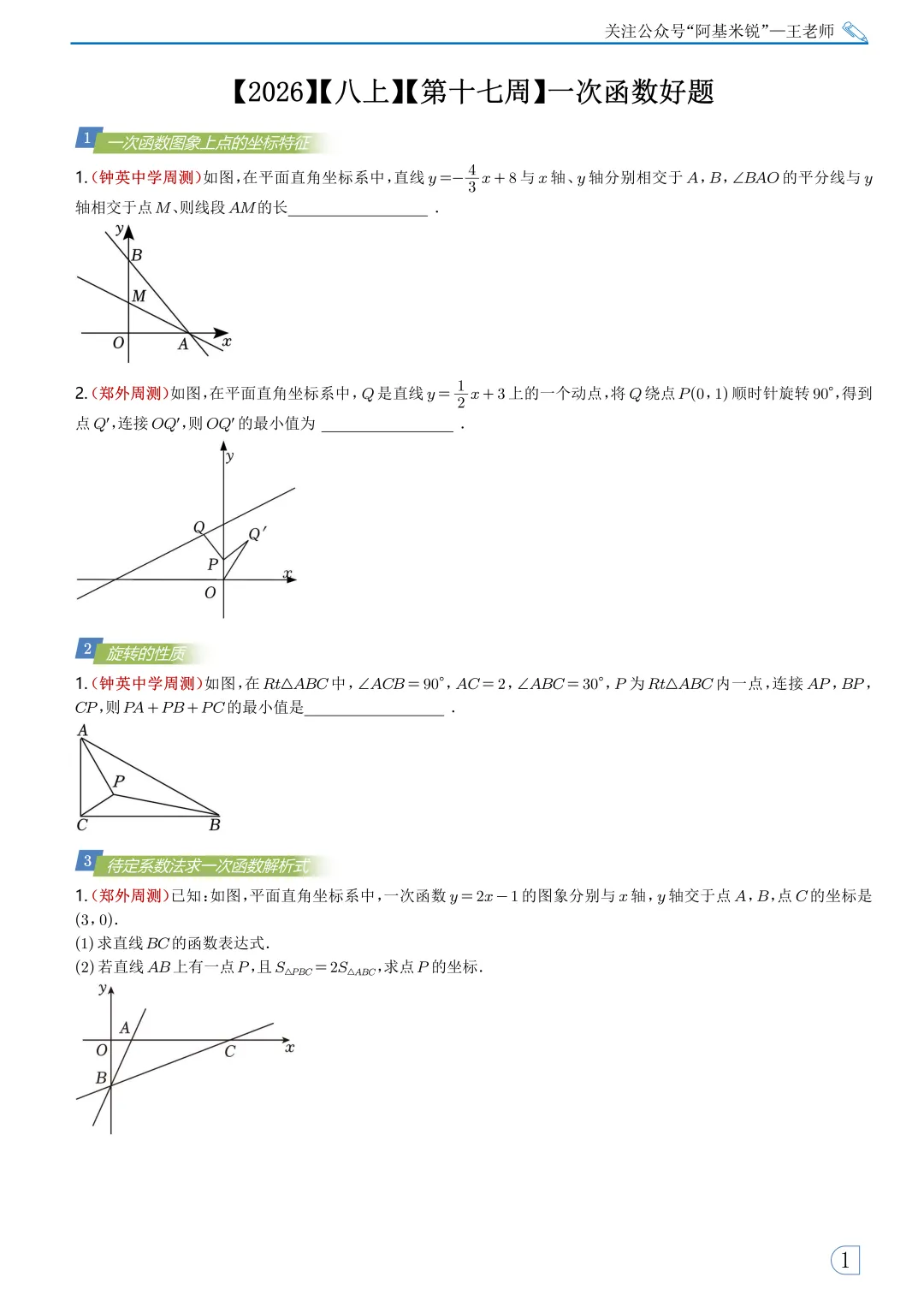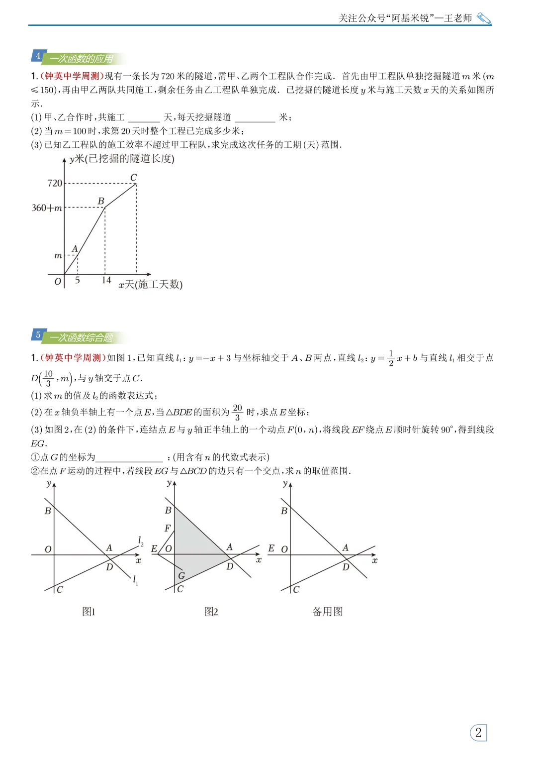 本周专题选取了钟英中学和郑外两个学校的周测,旨在给大家提升对一次函数的做题边界的认识。