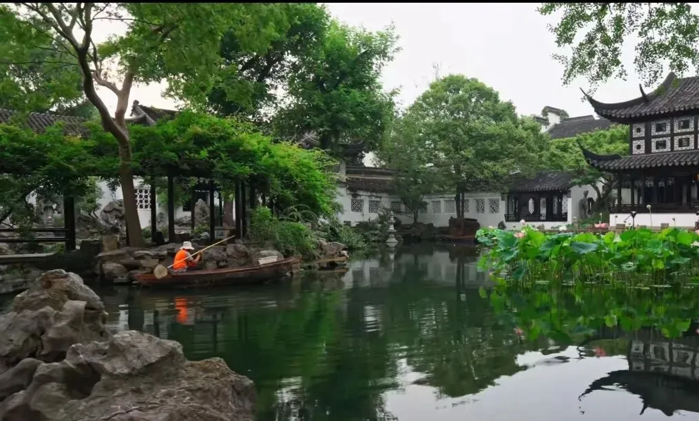 阅读“苏州园林里都有假山和池沼。假山的堆叠,可以说是一项艺术而不仅是技术。或者是重峦叠嶂,或者是几座小山配合着竹子花木,全在乎设计者和匠师们生平多阅历,胸中有丘壑,才能使游览者攀登的时候忘却苏州城市,只觉得身在山间。至于池沼,大多引用活水。有些园林池沼宽敞,就把池沼作为全园的中心,其他景物配合着布置。水面假如成河道模样,往往安排桥梁。假如安排两座以上的桥梁,那就一座一个样,决不雷同。池沼或河道的边沿很少砌齐整的石岸,总是高低屈曲任其自然。还在那儿布置几块玲珑的石头,或者种些花草:这也是为了取得从各个角度看都成一幅画的效果。池沼里养着金鱼或各色鲤鱼,夏秋季节荷花或睡莲开放,游览者看‘鱼戏莲叶间’,又是入画的一景。”