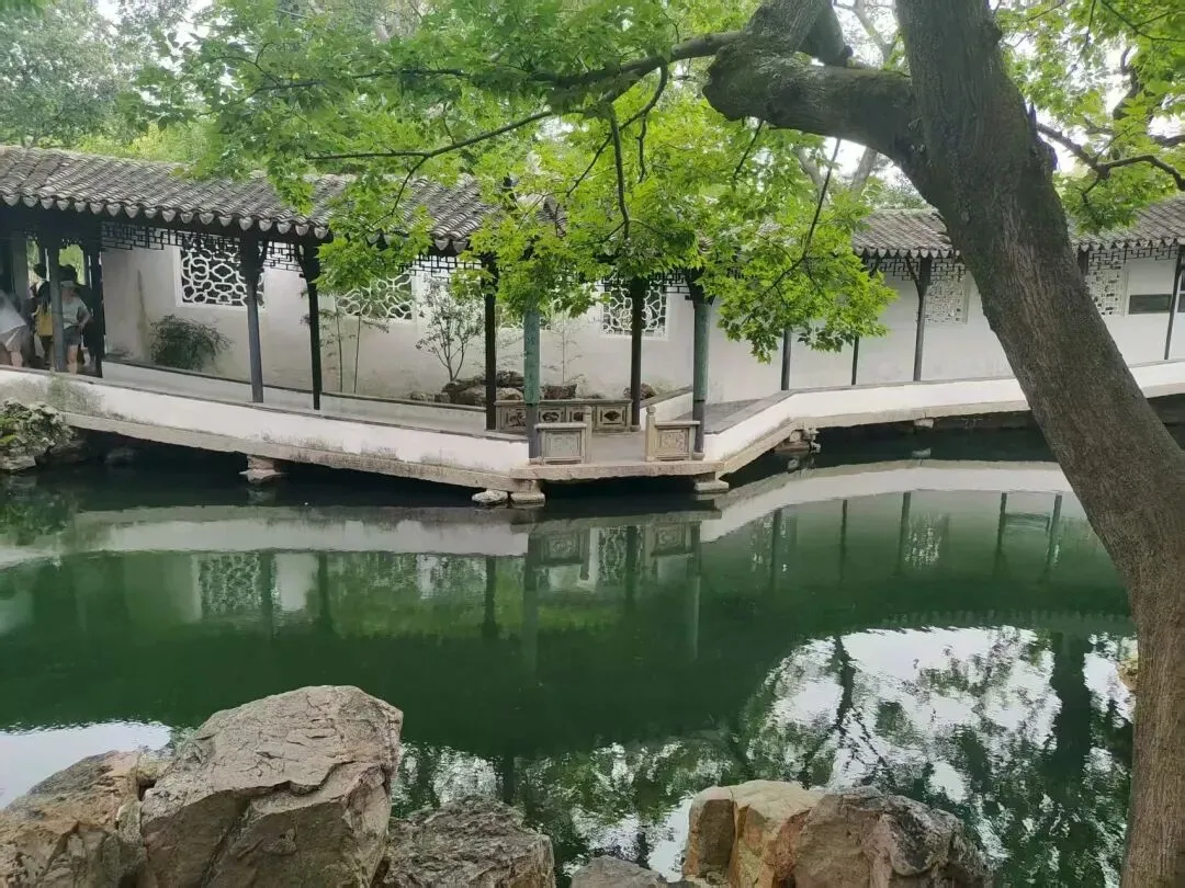 (2)示例:我校“校园江南园”设计紧扣“因地制宜”与“借景”两大理念。园中心利用低洼地形设一方池沼,引用活水,池边点缀玲珑怪石,种睡莲、养金鱼,这是因地制宜;池北筑花墙,墙上设镂空花窗,将墙外的教学楼与香樟树“借”入园中,虚实相映。园中小径曲折迂回,比笔直的通路更添雅致,充分展现苏州园林的韵味。