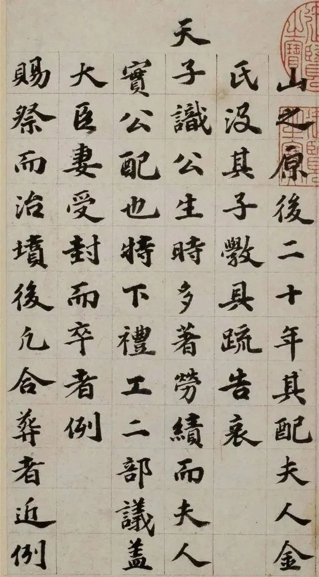 今日分享一帖由明代苏州的一位状元所书写楷书,此人就是吴宽,此帖是他为韩夫人金氏所撰并书写的墓志铭,书写字体方整,端庄浑厚且气势庄严,其书体结构大都比较紧密。根据韩夫人去世时间来推断,此时的吴宽应该是在60岁往上,此帖现被收藏于北京博物馆之中。