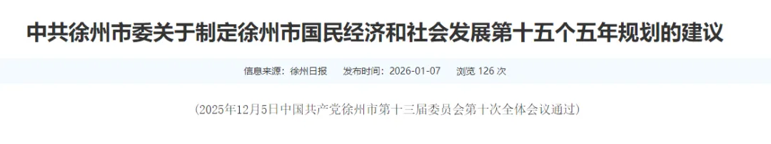 而1月7日徐州市政府网站发布的那份《“十五五”规划建议》,其实已经用更官方、更长周期的语言,给了一个答案方向。