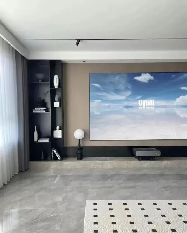 电视墙没做石材没做岩板 , 就是简简单单做了个L型电视柜 , 收纳空间超大。 家里有娃的都懂 , 东西只会越来越多 , 柜子做足了才是王道。