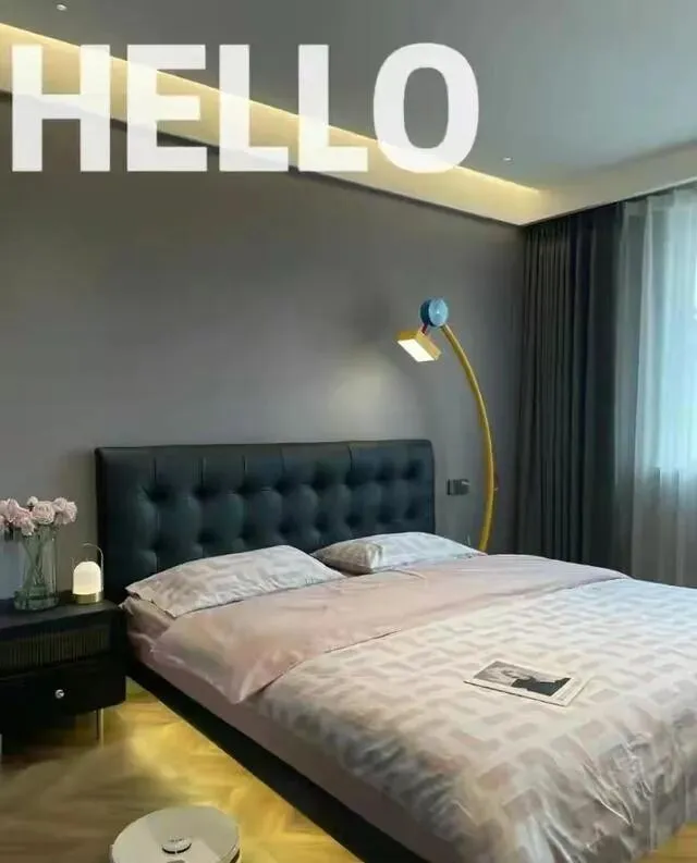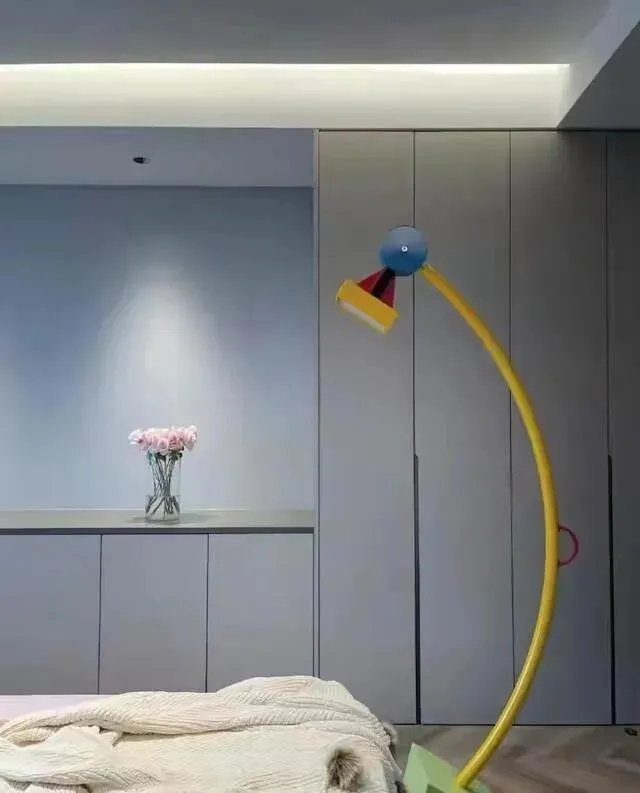床头这个彩色氛围灯绝了 , 和整屋的冷淡风形成反差 , 躺床上伸手就能关 , 太方便了。
