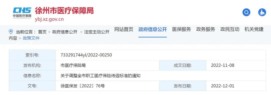 为进一步完善我市职工医疗保险(以下简称职工医保)制度,根据《省政府办公厅关于建立健全职工基本医疗保险门诊共济保障机制的实施意见》(苏政办发〔2021〕108号)、《徐州市职工医疗保险办法》(徐政规〔2022〕6号)等文件精神,结合我市实际,经市政府研究同意,现将调整我市职工医保待遇标准的有关事项通知如下: