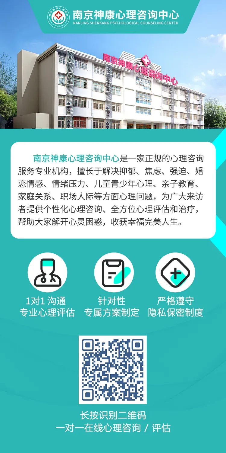南京神康心理咨询中心,以专业为舟,以关怀为帆,为每一位来访者提供全方位、个性化的心理健康服务。在这里,每一颗受伤的心都能找到归属,每一份隐藏的伤痛都能被温柔治愈。如果你或身边的人正被心理困扰所困,不妨走进南京神康心理咨询中心,让专业与温暖为你点亮心灵的灯塔,重获内心的平静与力量。