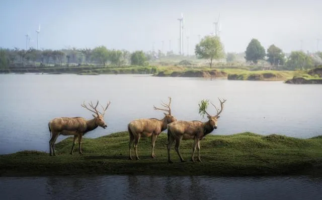 第二天一早,奔大丰。大丰站离麋鹿保护区近,打车过去,司机开口就是:“看鹿啊?得赶早,鹿精着呢,太阳一高就藏起来啦!”保护区门口有本地小摊贩,嚷着卖“鹿形糖人”,我买了一支,嘴里咬着糖,耳边是风掠过芦苇的沙沙声。进园子,果然远远看到一群麋鹿,长脖子、弯角,个顶个地悠哉。带着长焦相机,站远了拍,和旁边的摄影大爷攀谈:“你这相机得几万块吧?”他憨笑着说,“不贵,主要靠耐心。麋鹿嘛,清早出来溜达,碰上是缘分。”我没敢追太近,怕惊着他们。旁边有个小孩儿扯着妈妈的衣角:“妈,咋叫‘四不像’呀?”妈妈耐心解释,“头上像鹿,脸像马,蹄子像牛,尾巴像驴,啥都沾点边。”孩子一乐,蹦着去追蝴蝶。